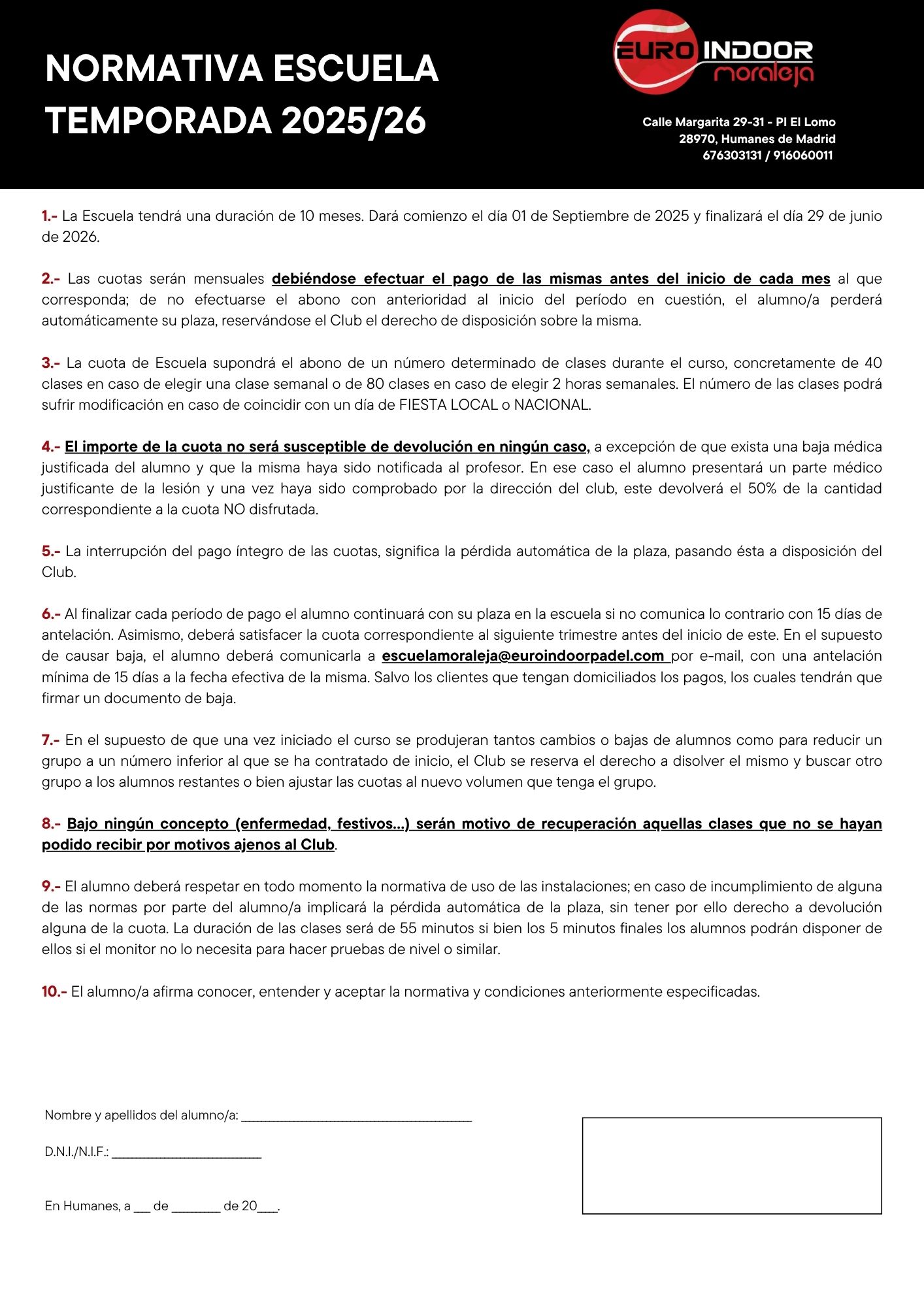 Escuela de Pádel Euroindoor – Temporada 2025/2026
